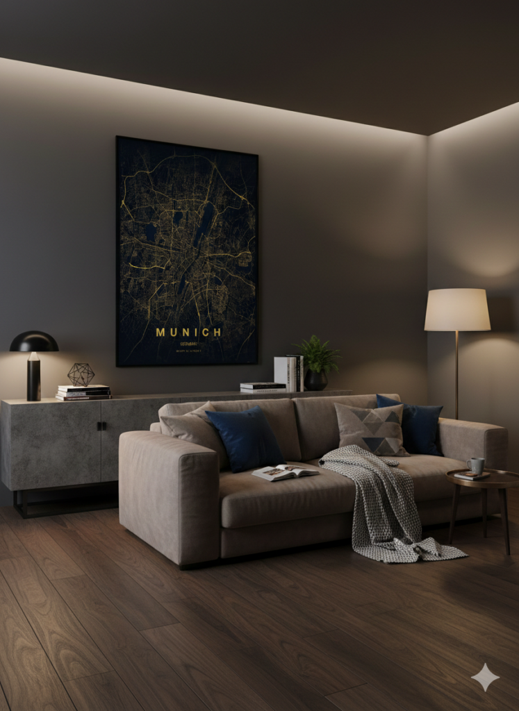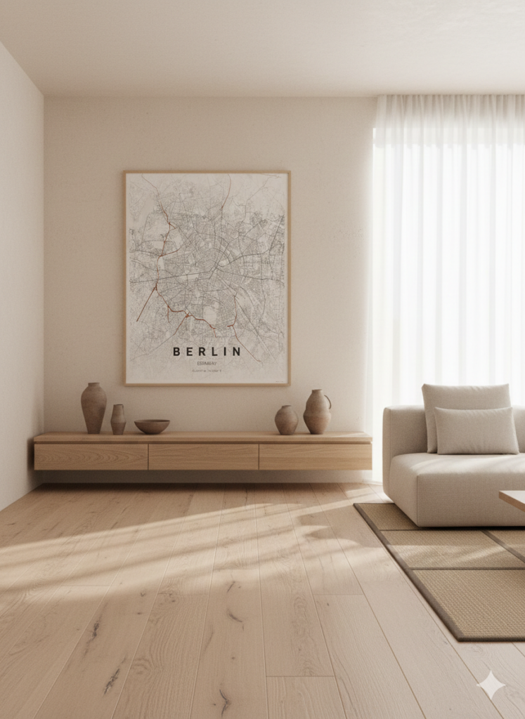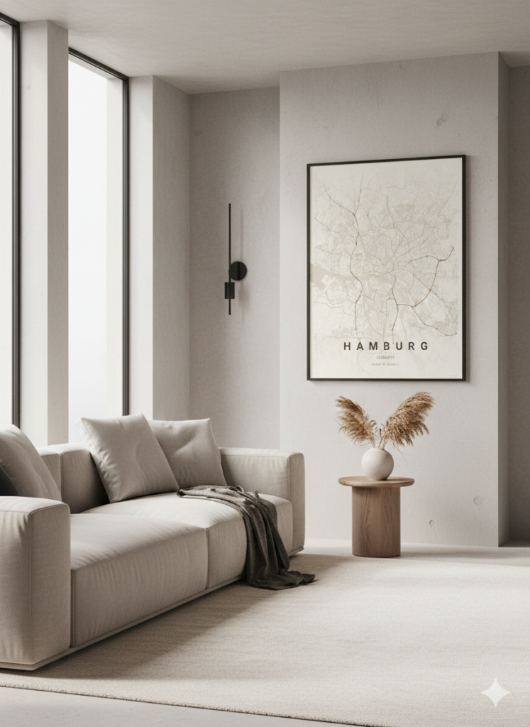 Urbane Stadtgrafiken für ruhige, moderne Interieurs
